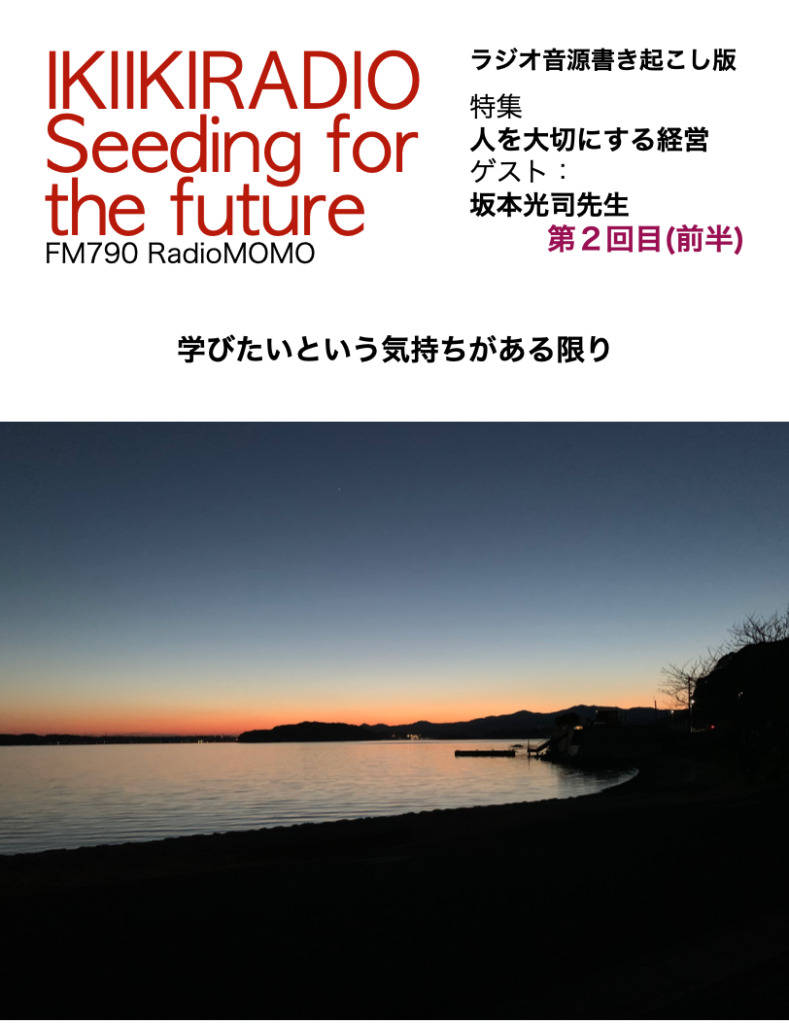 壹岐:「人を大切にする経営の真髄」に迫る。ということで、「日本でいちばん大切にしたい会社」のベストセラーでも知られております、元法政大学大学院教授で、人を大切にする経営学会会長の、坂本光司先生をゲストにお招きしております。