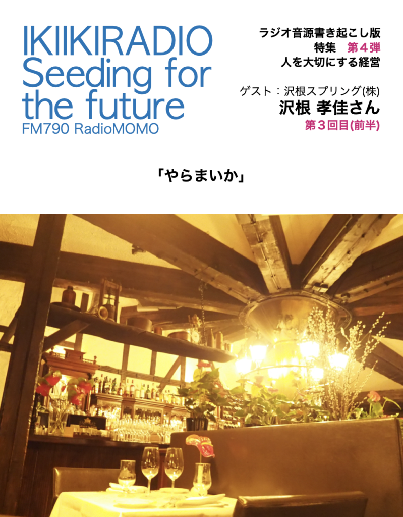 ラジオ書き起こし版の第4弾は、2022年の年末に放送された沢根スプリング株式会社の沢根 孝佳(さわね たかよし)さんご出演の回(3回分)をお送りします。過去の書き起こし版は第1弾の1(前半)、第2弾の1(前半)、第3弾の1(前半)をご覧ください。
