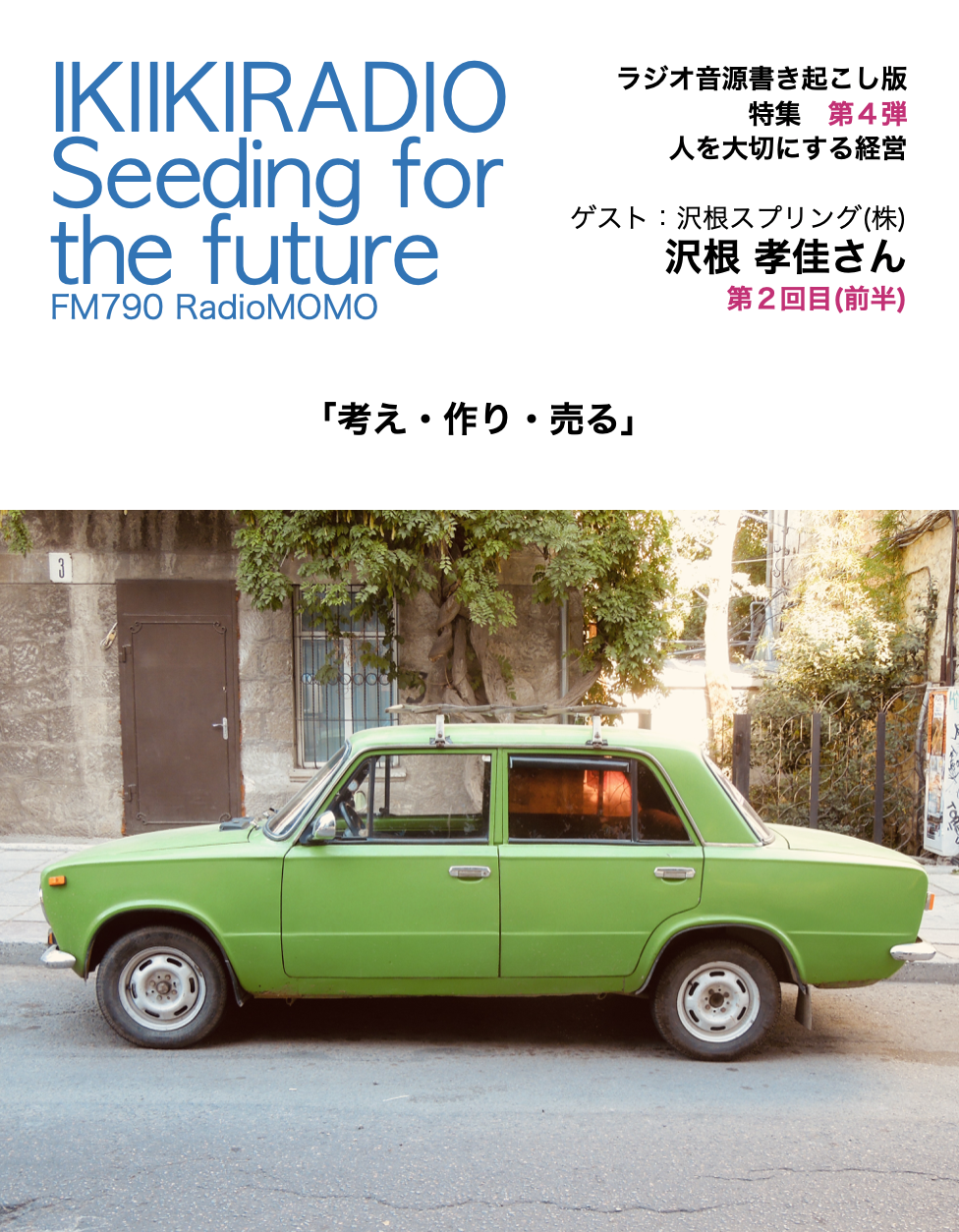 ラジオ書き起こし版の第4弾は、2022年の年末に放送された沢根スプリング株式会社の沢根 孝佳(さわね たかよし)さんご出演の回(3回分)をお送りします。過去の書き起こし版は第1弾の1(前半)第2弾の1(前半)第3弾の1(前半)をご覧ください。